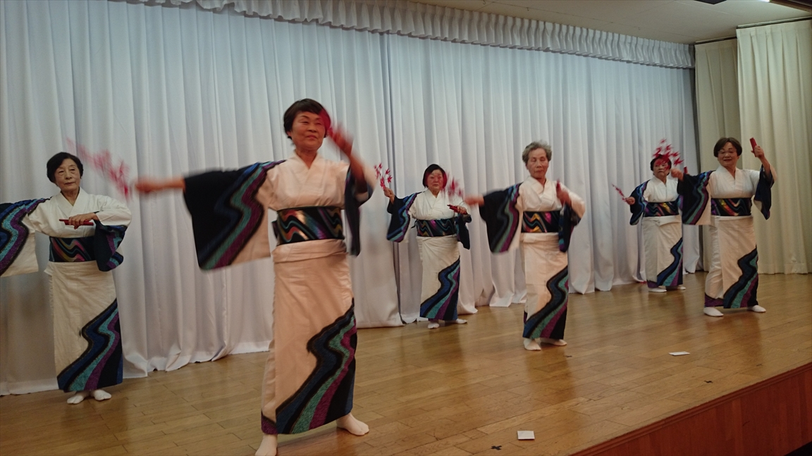 お酒が少し入ったころ、民踊サークルすみれ会が、息の合った見事な踊りを披露してくれました。